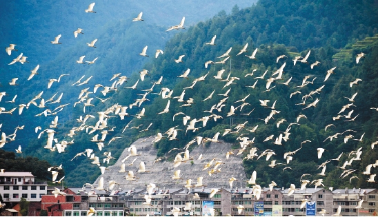 近几天,景宁畲族自治县千峡湖库区的数万只白鹭翩翩起舞,非常壮观。 李肃人 摄