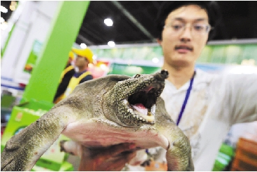 一只重逾6千克的种鳖亮相浙江省农业博览会。 视野网供图