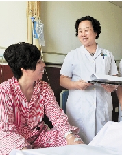 在新疆医科大学第一附属医院妇科住院部,丁岩在询问一位患者的术后康复情况。 新华社记者 王菲 摄