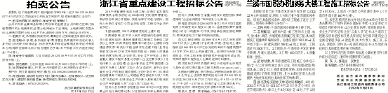 四、报名及购买招标文件的时间和地点:1.时间:2012年9月21日~2012年9月27日(法定公休日、法定节假日除外),每日上午8时30分至11时、下午2时至4时30分。2.地点:兰溪市公共资源交易中心(兰溪市丹溪大道160号七楼)。