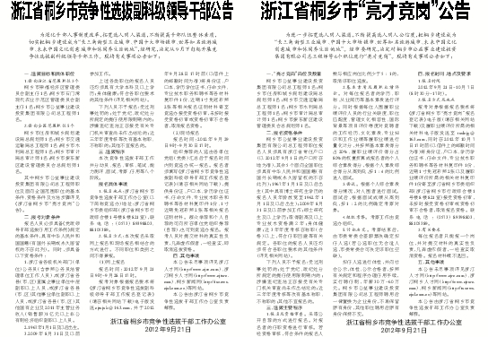 浙江省桐乡市竞争性选拔干部工作办公室