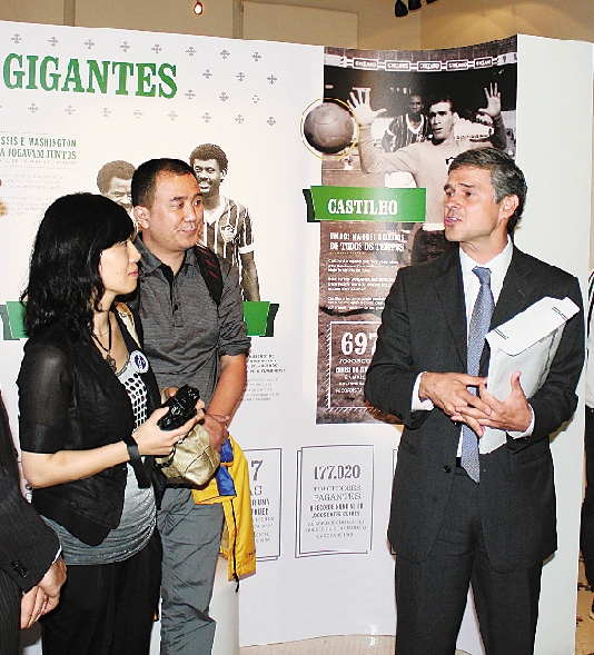 即将在巴西举办的2014年世界足球杯比赛和2016年奥运会蕴藏着无限商机。图为本报记者9月6日在里约热内卢采访当地足球俱乐部人士。