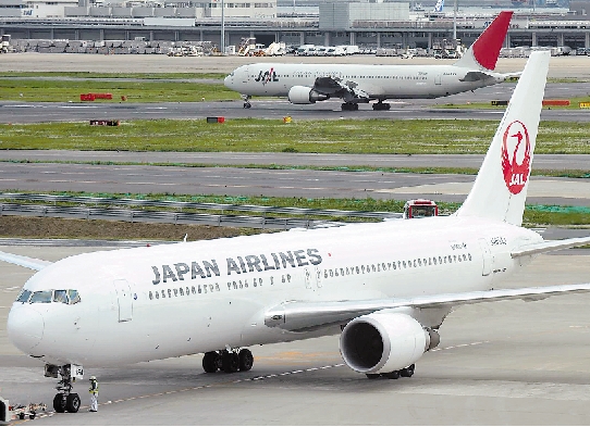 图为在日本东京羽田机场上拍摄的日本航空公司的飞机。 新华社发