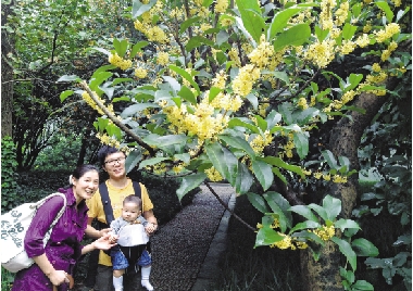 杭州曲院风荷,沁人心脾的桂花香吸引了游人的脚步。 本报记者 杨晓轩 摄