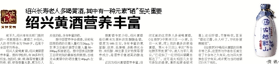 绍兴人爱喝黄酒,绍兴黄酒营养丰富。据科学检测,有20多种无机盐,包括钙、镁、钾、磷等常量元素和铁、铜、锌等微量元素,更为引人关注的是,含有丰富的硒。