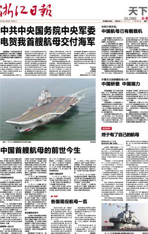 中共中央国务院中央军委电贺我首艘航母交付海军