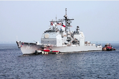 美国海军提供的海军宙斯盾级巡洋舰“圣哈辛托”号资料图。 视野网供图