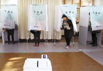 12月19日,选民在首尔一个投票站参加投票。 新华社发