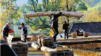 金竹镇农民晒原生态山茶籽