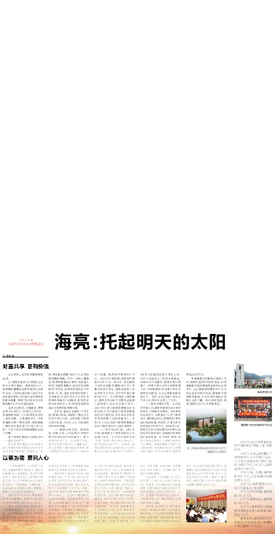 近年来,基金会主要的“三项工程”就像三根线,串联起了基金会工作的大部分内容,也串联起了海亮与家乡故里、与社会公众、与祖国母亲的浓浓深情。