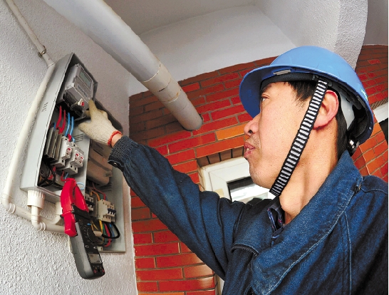 北京首个个人光伏发电项目并网发电。图为工作人员进行并网操作。 新华社发