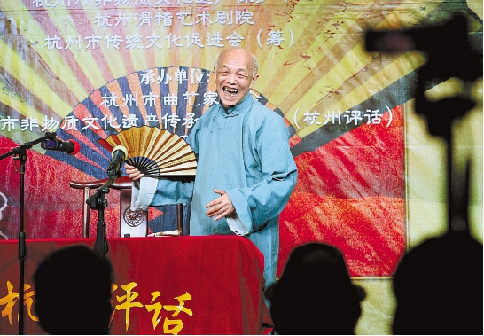 图为艺人王宝善讲杭州评话。 见习记者 魏志阳 摄