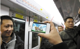 杭州市民通过天翼3G手机在地铁上看在线视频。刘寰平 摄