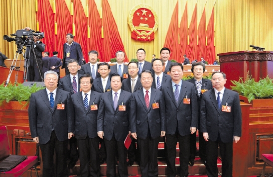 3月17日,第十二届全国人民代表大会第一次会议在北京人民大会堂举行闭幕会。这是参加会议的部长们在会后合影。