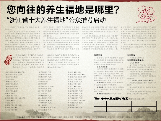 邮寄选票:浙江日报文化产业大厦502室,“浙江省养生福地”推选活动组委会收,邮编:310039。