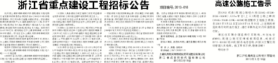 浙江省重点建设工程招标公告 项目编号:2013-018