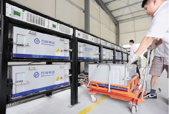 万向集团研发的纯电动公交车电池,目前已应用于杭州等城市的纯电动公交车。 本报记者 董旭明 摄