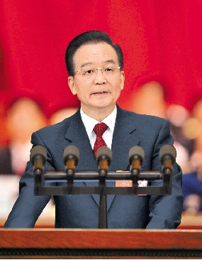 3月5日,温家宝代表国务院在十二届全国人大一次会议上作《政府工作报告》。 新华社记者 黄敬文 摄