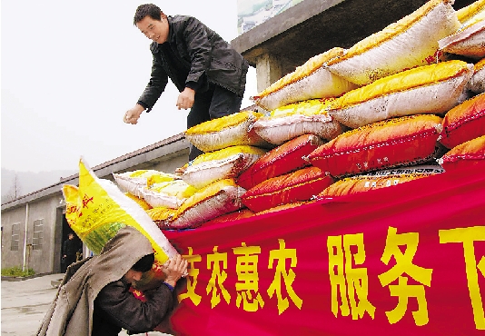 3月20日,本报联手省供销社把种子、肥料等农资送到专业合作社和种粮大户手中。 刘元斌 摄