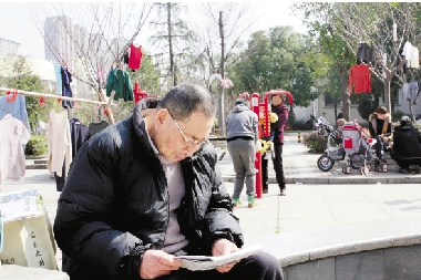福明家园社区公园里,一位老伯在看报纸。历经10年市民化改造,曾经的老菜农,逐步适应城市居民生活。 吴晓鹏 摄
