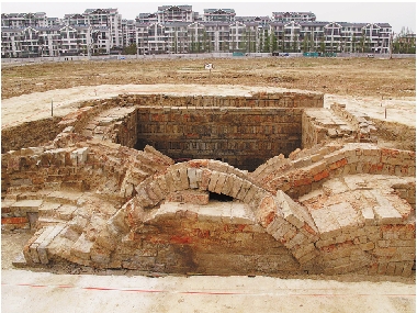 扬州发现隋炀帝陵寝。这是4月14日拍摄的隋炀帝陵寝发掘现场。 记者从扬州市文物局证实,近期扬州市邗江区发现疑似隋炀帝陵寝的古墓。该古墓出土墓志写有“隋故炀帝墓志”,去世时间为“大业十四年”等字样,与史实相符。 据悉,扬州市邗江区一处房地产项目施工时发现了两座古墓,每座占地面积约二三十平方米。其中已发掘的一座墓中,出土了铜制的衔环铺首以及金镶玉腰带,而墓志清楚写着“隋故炀帝墓志”等字样。因此有考古专家推测,该墓志表明墓主为隋炀帝杨广。 新华社发 |