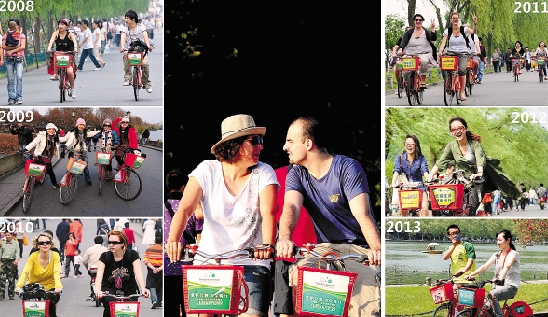 2008年5月1日,杭州首批公共自行车上路,到今年5月1日已满五周岁。目前,杭州公共自行车共69750辆,日均租用量达到25.75万人次。 里尔 摄