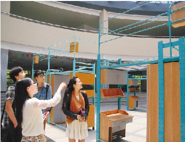 5月2日,浙江农林大学几位学生对在校园里展示的各款寝室家具样品进行评议,学生的投票结果将作为学校采购的重要依据。 郑丽萍 陈胜伟 摄