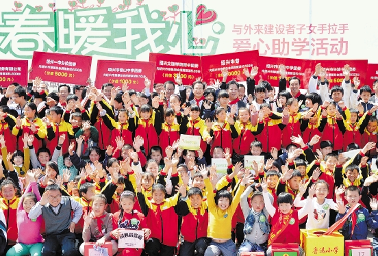 日前,“春暖我心·与外来建设者子女手拉手”爱心助学活动在绍兴城市广场启动。 袁云 摄
