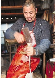 本报椒江5月5日电 见习记者 梁国瑞 区委报道组 金志良 邻居们都知道,动了徐世忠的铲子、刨子,就像伸手拔老虎的须子——他肯定会跳起来。 这一幕今天再次上演。下午4时许,65岁的徐世忠正在店里给床架凿卯眼,对面的老友跑来喊他打牌,老徐推脱,对方一把夺了他手中的扁铲,一向和气的老徐瞬间暴跳,“这个还我,这个还我!”做了一辈子棕棚床,老徐对这套“吃饭的家伙”看得极重,尽管这门手艺已日渐衰微、荣光不再。 椒江区育才路,成片高楼中间有一排低矮的老房子,徐世忠的店就开在这里,门口搭着塑料雨棚,棚下摆着几张刚做好的棕棚床。往北10多米,徐世忠指着嵌有五角星的老墙门说:“当年很红火的海门藤棕厂就在这里,做棕棚床的师傅就有50多人。”他当年就是厂里的师傅。 “以前,会这门手艺很吃香的。”徐世忠16岁开始学做棕棚床,至今已近50年,眼看着这门手艺由盛而衰,“上世纪60年代,国营单位的职工每月工资才30多元,我们就有80多元了,如果做包工,甚至有100多元。” “当年藤棕厂出来的师傅,还在做棕棚床的,就剩我一个人了。”看着眼前破落的门店,老徐握着榔头的右手轻轻抖了几下,嘴里喃喃道,这门手艺已经没落了,没用了。 工作间的地上,摆着一张2米多长、约40厘米宽的长木凳,凳面坑坑洼洼,都是斧头、钢锯等器具留下的印痕。一根长条形木料被固定在长凳上,徐世忠左手握定一根扁铲,右手拎起一把榔头,照着木架上铅笔画出的线框,轻轻一凿,就起出一片木花来……不到10分钟,一个卯孔就凿好了。老手艺做床,仍然沿用传统的榫卯结构,不用一枚钉子。 “木匠活比穿棕线还重要。”做一张棕棚床, |