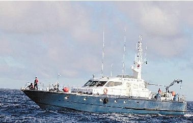 图为涉嫌向台湾渔船开火的菲律宾海岸警卫船。 视野网供图