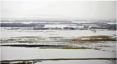 内蒙古呼伦贝尔市鄂温克族自治旗伊敏、红花尔基洪灾区一片汪洋(5月9日摄)。进入5月以来,内蒙古呼伦贝尔市气温急剧升高,积雪融化加快,导致鄂温克族自治旗红花尔基水库水位迅速上升并超出警戒线。为保证安全,从5月6日开始,红花尔基水库匣门全部开启泄洪,大坝下游七个苏木(乡镇)遭受严重水灾。目前,当地政府群众正全力组织救援工作,已投入抢险救灾车辆600余辆次,军、警、民1500余人坚守抢险救援一线。灾民急需御寒帐篷、衣被,卫生防疫形势不容乐观。 新华社发(纪松涛 摄) |