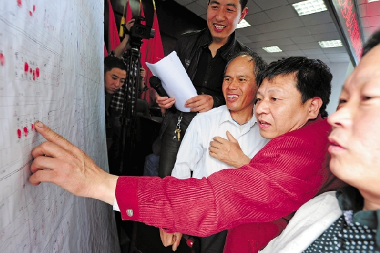 抓到阄后,在村监会监督下,村民欣喜地在村小区规划图上标注自己名字,按上手印。
