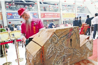 5月12日,2013年度中国民族民间木雕技能擂台赛在嘉善开赛,来自全国各地的民间木雕高手现场切磋木雕技艺。 胡凌翔 王静皎 摄