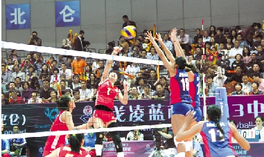 5月17日,2013中国国际女排精英赛在宁波北仑开赛,中国队以3比0战胜波多黎各队。图为中国女排队员殷娜在比赛中扣球。 索向鲁 摄