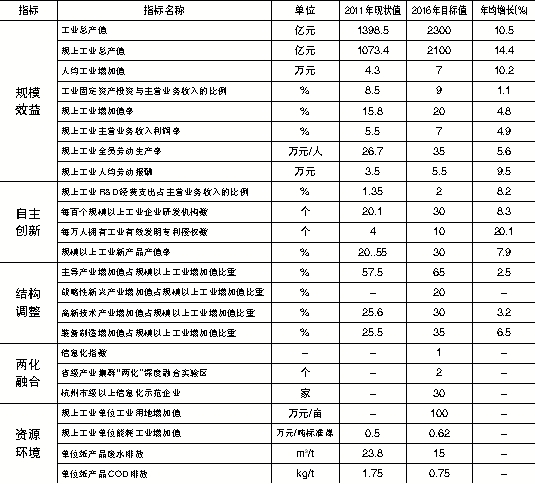 | 指标 | 指标名称 | 单位 | 2011年现状值 | 2016年目标值 | 年均增长(%) |