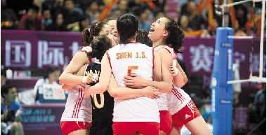 5月19日,中国队队员庆祝胜利。当日,2013中国国际女排精英赛在宁波北仑进入最后一天的比赛,中国队以3比1战胜古巴队;最终,中国队以三战全胜的成绩获得冠军。 新华社发