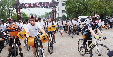 5月18日,钱江晚报体育庙会暨“美汁源4+2美丽浙江行”第四站走进江山,100多辆各色自行车穿行于日月村、勤俭村、永丰村等十个村庄,欣赏变化中的浙西美丽新农村。 潘良干 摄