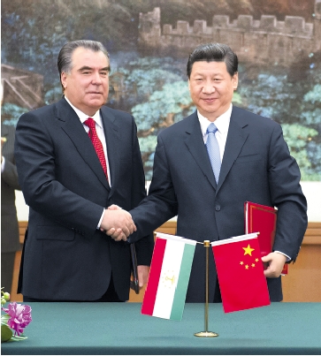 这是会谈后,两国元首共同签署《中华人民共和国和塔吉克斯坦共和国关于建立战略伙伴关系的联合宣言》。 新华社记者 谢环驰 摄