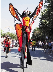 5月19日,一名狂欢者在德国柏林文化狂欢节上表演。当日,柏林文化狂欢节大游行在柏林克罗伊茨贝格区举行,来自世界各地80多个国家和地区的人们尽情展现各自的特色民俗和文化。柏林自1996年起举办文化狂欢节,展现柏林作为世界大都市多元文化的丰富性与包容性。 新华社记者 潘旭 摄 |