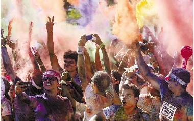 5月19日,参赛者在巴西的马瑙斯参加“彩色赛跑”。当天,大约7000人参加了这项5公里赛跑,参赛者在比赛中彼此喷撒蓝、粉、橘和绿色粉末。 新华社发