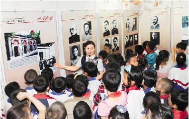 小观众参观“开天辟地——中国共产党创建史图片展”。