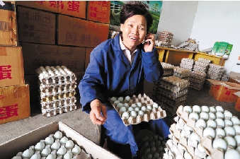蛋价回升,台州市椒江凤仔养鸡专业合作社社员陈彩玲的脸上出现了久违的笑容。 台州日报记者 叶晓光 摄