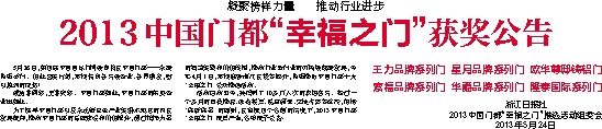 为了探寻中国门都以及永武缙五金产业集群示范区的内在发展规律,推动中国门都的品牌建设和价值提升,通过榜样力量的智慧集聚和价值传播,推动门业全行业的可持续健康发展,今年4月1日,本报联合浙江在线等媒介,隆重推出中国门都十大“幸福之门”公众推选活动。