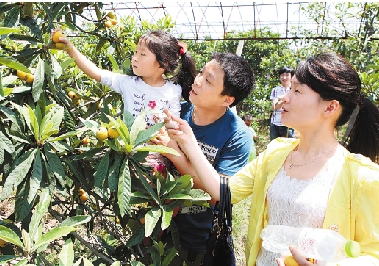5月24日,德清县雷甸镇上千亩枇杷园丰收,迎来众多游客采摘。