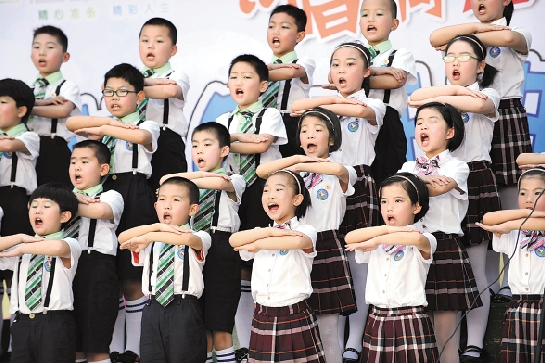 5月24日,台州市白云小学举行“放歌红五月 唱响中国梦”校园班班唱比赛活动,一曲曲耳熟能详的歌曲表达了1502名学生的中国梦想。 台州日报记者 杨辉 摄