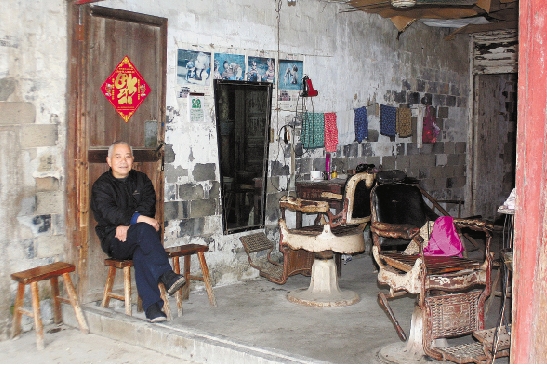 没有客人时,潘师傅就悠闲地坐在店内,看着外面车来人往。