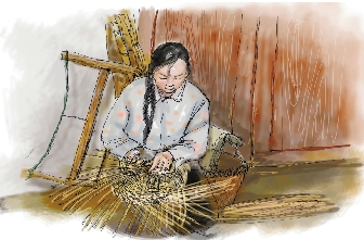 刘文仙正专心致志地编着竹篮。缪声远 绘