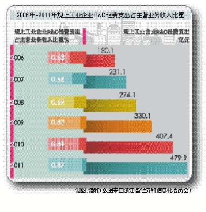2006年-2011年规上工业企业R&D经费支出占主营业务收入比重