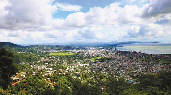 这是从特立尼达和多巴哥首都西班牙港炮台山上俯瞰的西班牙港市全貌(2011年11月14日摄)。 新华社发