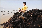 时下正是海带丰收时节,雨过天晴,三门县的渔民正在忙碌收割海带。(记者 叶晖 通讯员 陈维连 吴新越 摄)
